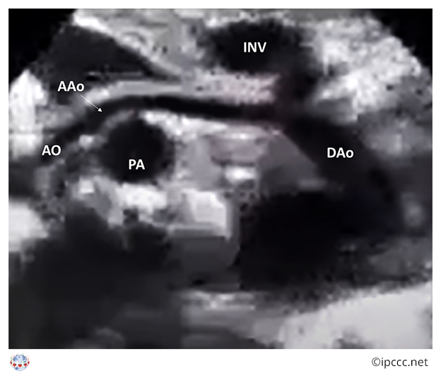 - ■ Aortic root side by side and directly leftward to pulmonary root